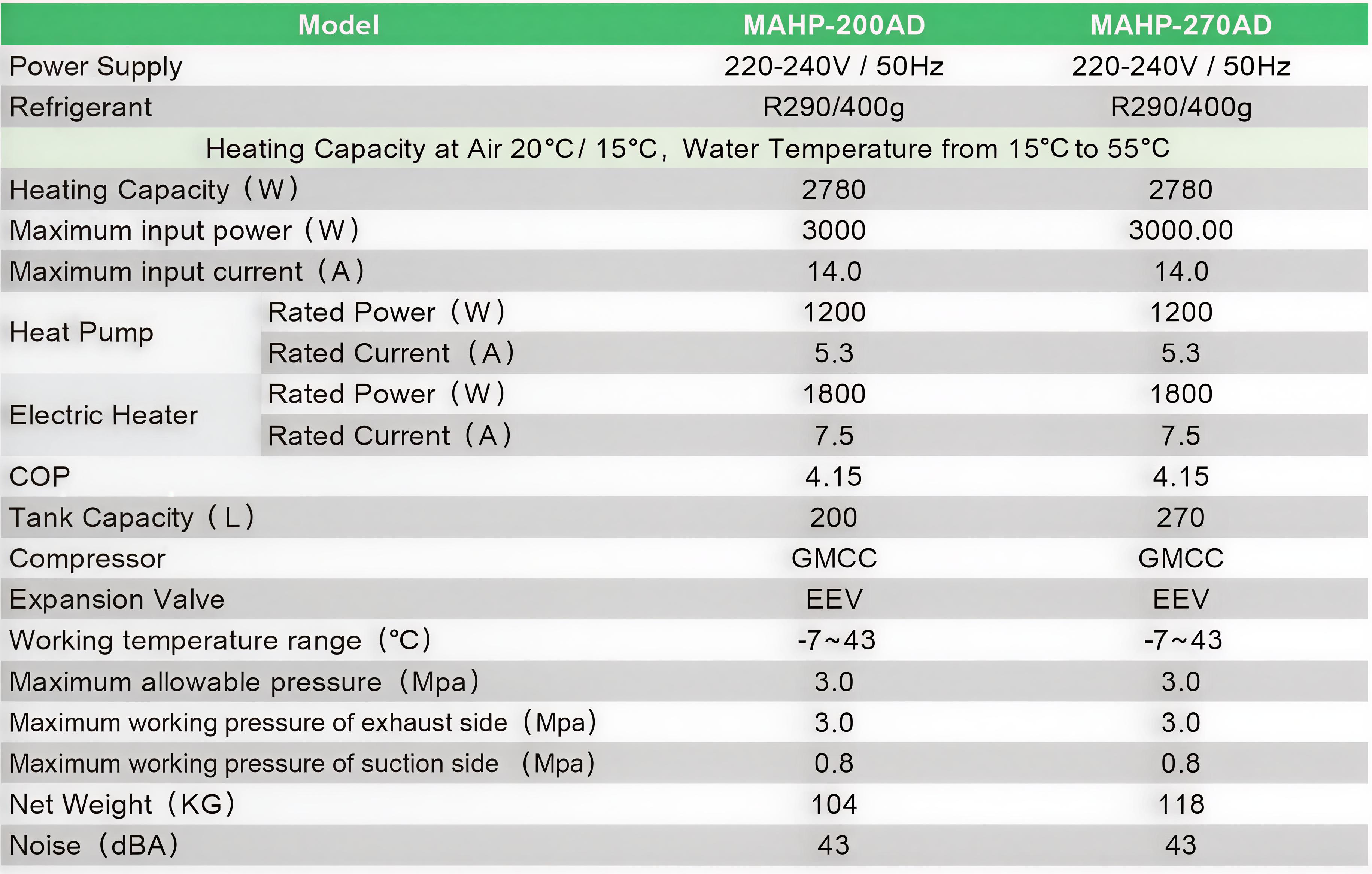 back up built-in 1.8kw electric heater✓